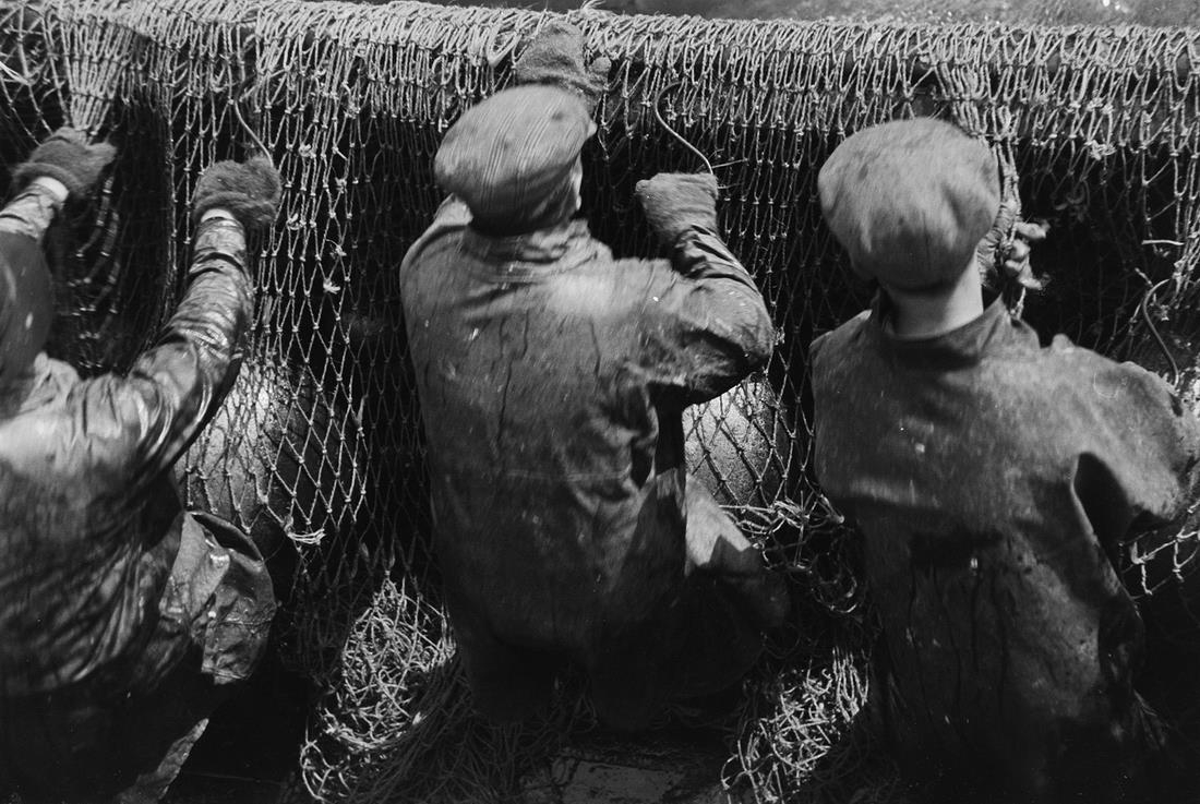 Tekið á sjó, um borð í Þórólfi RE 134. Bátur, veiðarfæri, karlmenn/sjómenn.