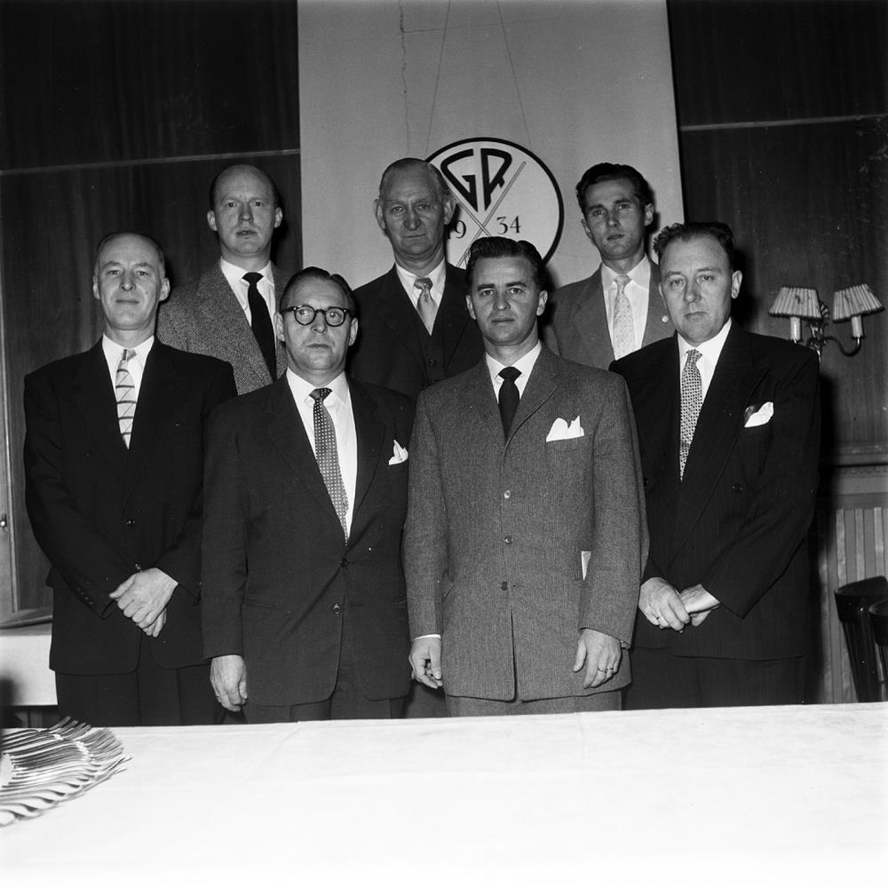 „Frá vinstri: Jón Thorlacius, Ólafur Ágúst Ólafsson, Sigurjón Hallbjörnsson, Helgi Hermann Eiríksson, Jóhann Eyjólfsson, Guðmundur Halldórsson, Guðlaugur Guðjónsson.“ (EK 2020)