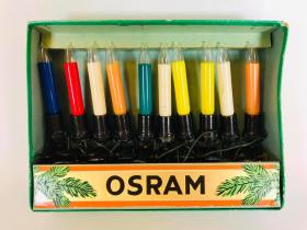 Jólasería í upprunalegum umbúðum, grænn kassi - engill með risastórt kerti/ljósaperu í hreindýrasleða. Serían er með 10 kertalaga perum, allar glærar en ,,kertin,, eru í ýmsum litum.