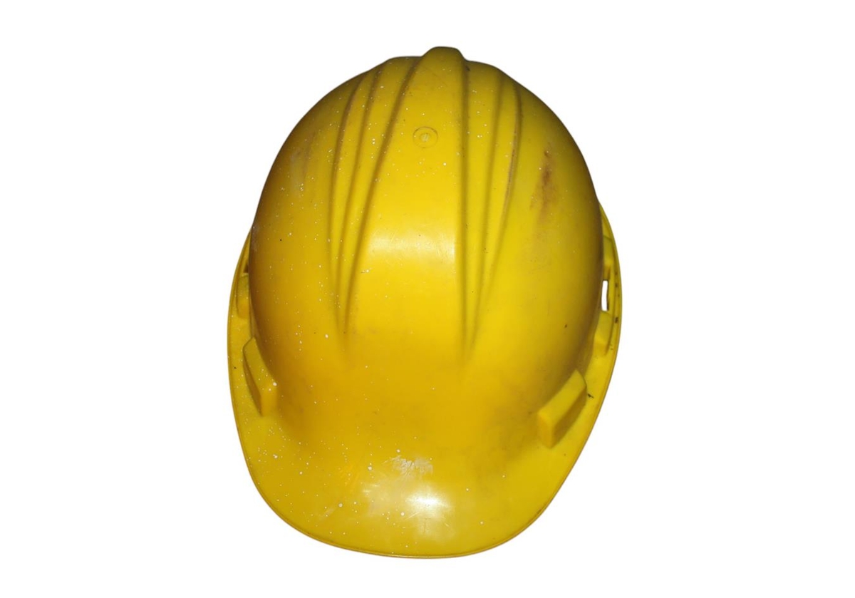 Vinnuhjálmur / öryggishjálmur, gulur á lit og var notaður í Sementsverksmiðju Ríkisins á Akranesi. Hann var notaður í kringum 2000.