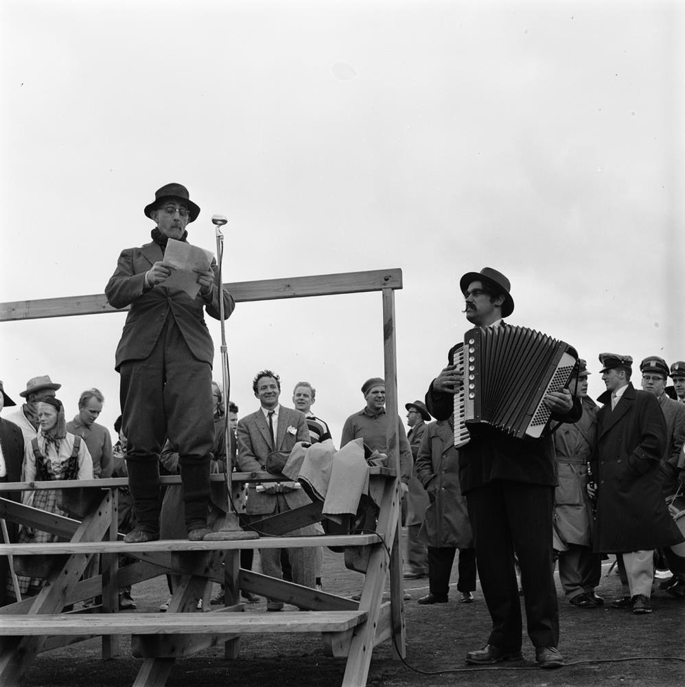Íþróttarevía blaðamanna og leikara var haldin þann 26.05.1957 og hófst hún með skrúðgöngu frá Þjóðleikhúsinu. Lúðrasveitin Svanur lék fyrir göngunni. Á íþróttavellinum flutti Brynjólfur Jóhannesson setningarræðu og að henni lokinni hófst fimleikasýning. Jón Sigurbjörnsson söng negralög við undirleik lúðrasveitarinnar Svans. Þá voru sungnar gamanvísur og síðan hófst knattspyrnukeppni leikara og blaðamanna. Þá söng Steinunn Bjarnadóttir gamanvísur og síðan hófust aflraunir, Haraldur Björnsson, Karl Ísfeld, Rúrik Haraldsson og Thorolf Smith reyndu þar krafta sína. Kristinn Hallsson söng og stjórnaði fjöldasöng. Reiptog hófst að söngnum loknum milli leikkvenna og blaðamanna, 8 manna sveitir. Þá flutti Karl Guðmundsson gamanþátt. Loks var svo boðhlaup milli A og B-sveita leikara og blaðamanna. Brynjólfur Jóhanness söng síðan lokasönginn.