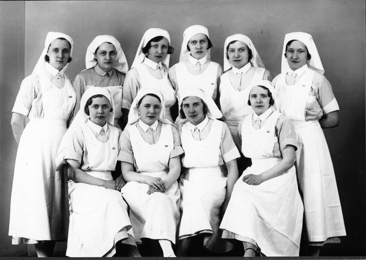Útskriftarhópur frá Hjúkrunarkvennaskóla Íslands 1935. 10 luku námi allar á mynd.