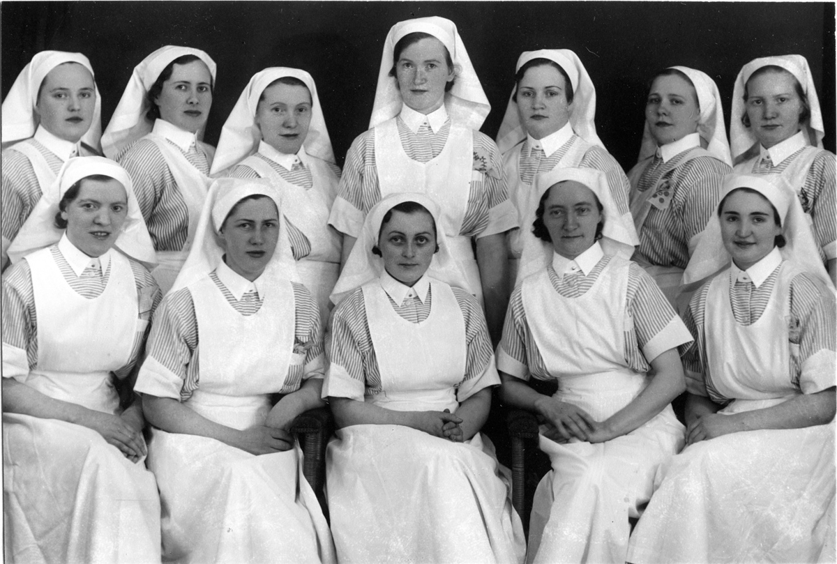 Útskriftarhópur frá Hjúkrunarkvennaskóla Íslands vor 1938. 12 luku námi allar á mynd.