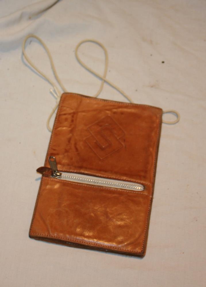 Innanklæðaveski úr ljósu leðri og merkt S (Samvinnubankinn).