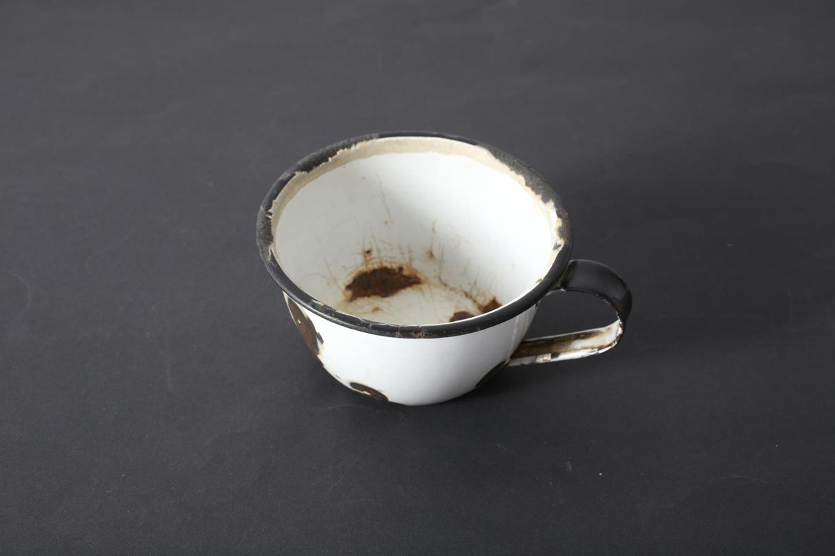Rakbolli Aðalsteins Jónssonar (f. 06.12.1895, d. 03.02.1983) frá Vaðbrekku. Hvítur emeleraður, með svarti línu efst og svörtu haldi. Orðinn vel ryðgaður bæði að innan og utan.