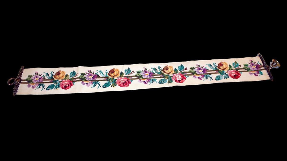 5 Klukkustrengir ,gerði Kristín Sigtryggsdóttir. Allir munir ,sem hér eru skráðir 1986-01 til 1986-90,. eru úr dánarbúi Kristínar Sigtryggsdóttur ,Bergþórugötu 29 ,Rvík. Kristín lagði það fyrir að þessir hlutir gengu til Byggðasafnsins að Görðum að henni látnri : Munirnir voru afhentir safninu vorið 1981 af Alexíusi Lútherssyni ,systursyni Kristínar. Eftirtaldir færist á fyrsta spjaldskráarblað :