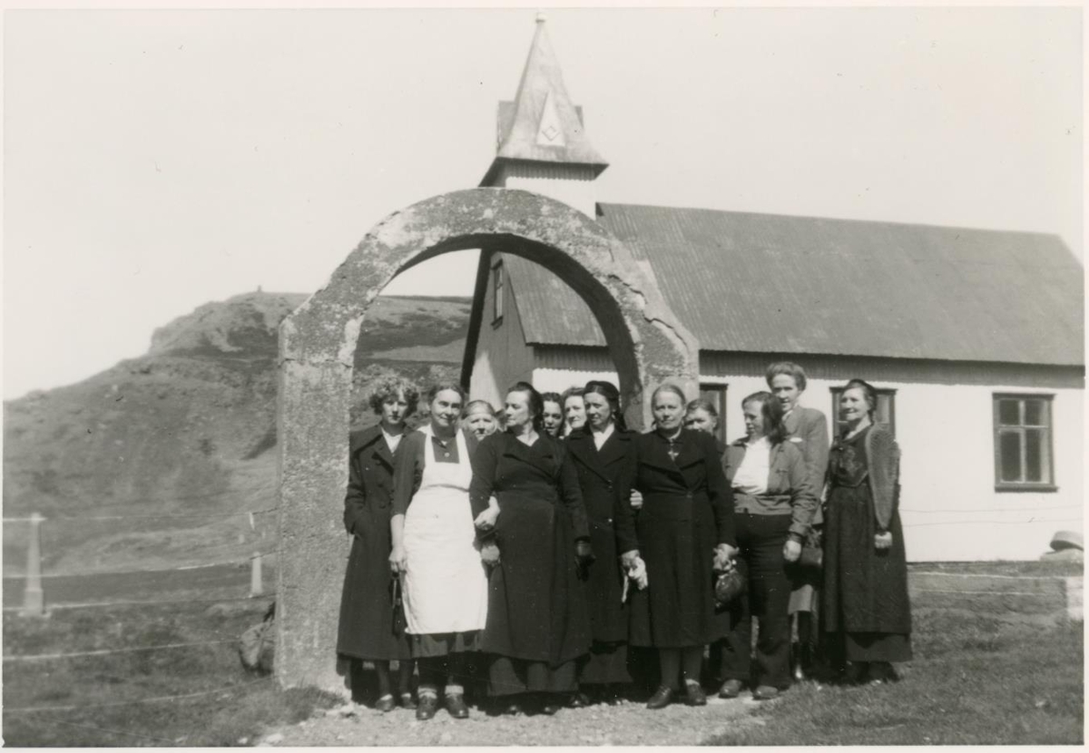 Frá vinstri. Ásgerður Guðnadóttir í Svínaskógi, Elínborg Bogadóttir á Skarði, Jóna Valgerður Jónsdóttir í Svínaskógi, Björg Magnúsdóttir í Túngarði, Ingibjörg Kristinsdóttir á Skarði, Guðbjörg Andrésdóttir á Valþúfu, Steinunn Þorgilsdóttir á Breiðabólstað, Elín Jóhannsdóttir á Hellu, Sesselja Bæringsdóttir í Köldukinn, Jófríður Einarsdóttir á Hallsstöðum, Margrét Gísladóttir á Staðarfelli og Þuríður Bæringsdóttir á Hafursstöðum.