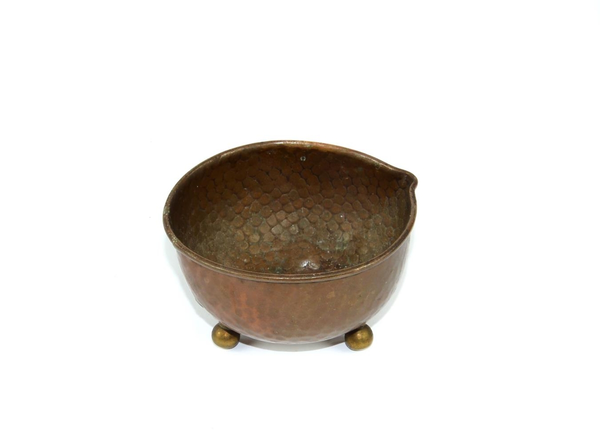Mjólkurkanna úr kopar á þremur fótum. Kannan er frekar grunn og er hringlaga. Úr fórum Ole Tynes, síldarsaltanda og konu hans Indíönu Tynes. Frá fyrstu söfnun Síldarminjasafnsins, um 1977.