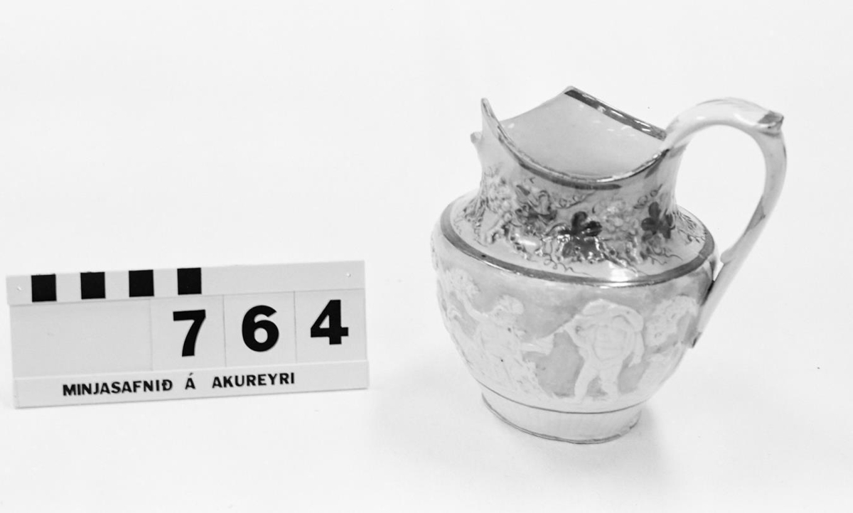 svo og margskonar öðru skrauti. Kannan er hvít að innan, lítið eitt sporöskjulöguð,