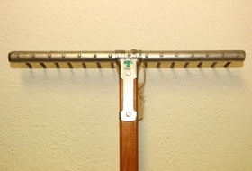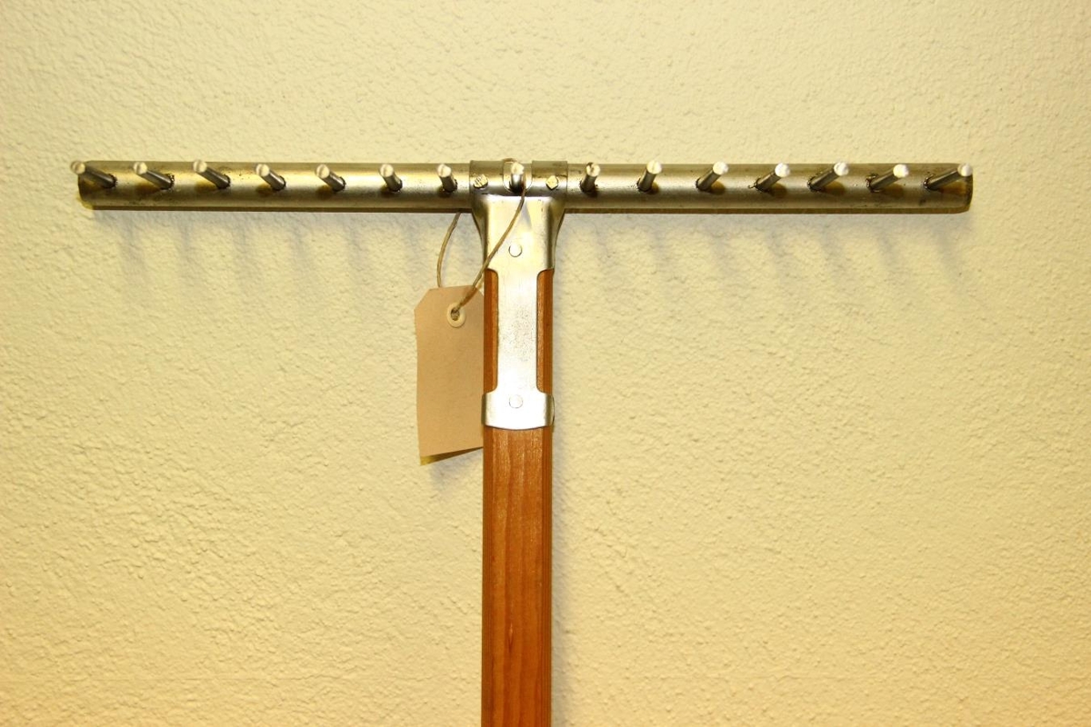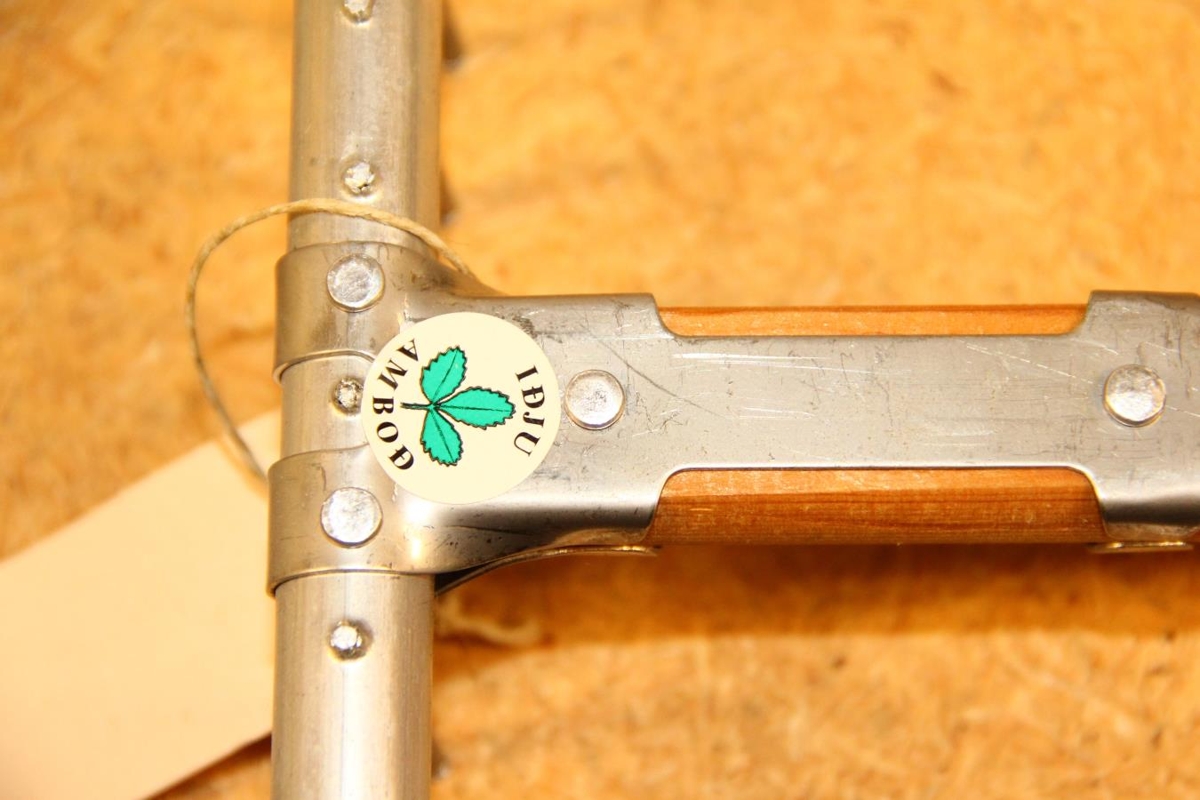 Hluturinn er barnahrífa. Hún er með skapt úr furu en haus og tindar eru úr áli.. Amboðið (hrífan) er ónotað.