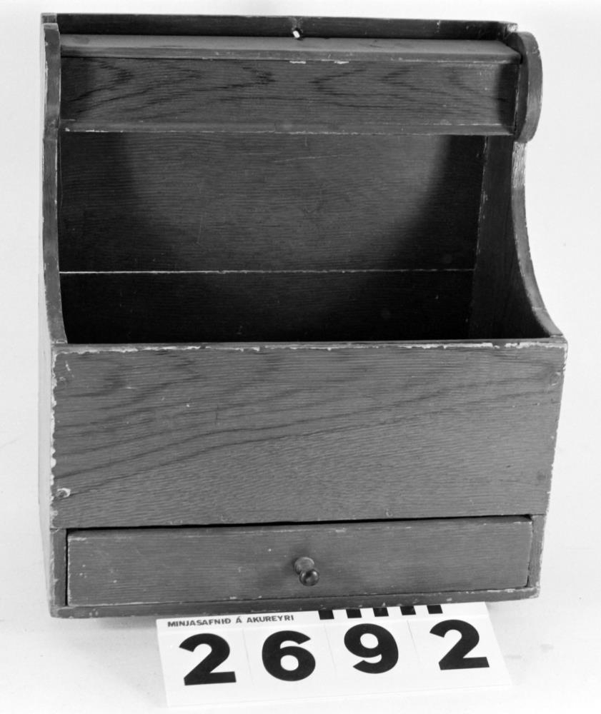 loki, 5 sm. djúpt. Kistan er brúnmáluð, dýpt 20 sm.