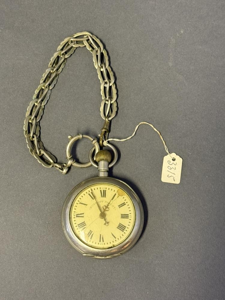 Vasaúr með festi. Úr eigu föður gefanda, Guðmundar Guðmundssonar í Fíflholti. Þetta er svonefnt Bakkaúr.