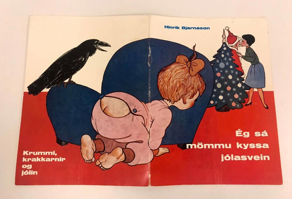 Jólavísur, bókin : Ég sá mömmu kyssa jólasvein. Hinrik Bjarnason. Teikningar : Baltasar. Útgefandi: Prentsmiðja Jóns Helgasonar.