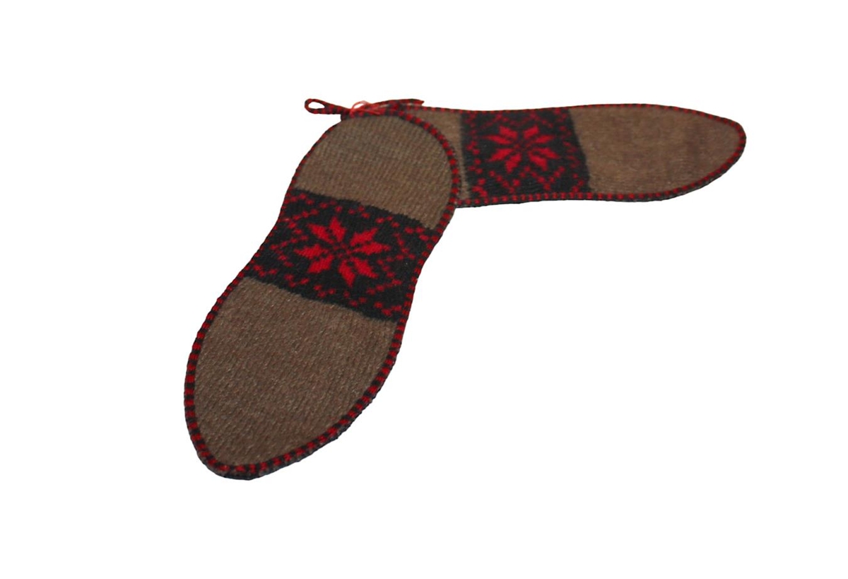 Slyngdir rósaleppar austfirskir. Leppana prjónaði og vann Anna Gunnarsdóttir í Dagverðargerði í Hróarstungu (f. 1899 ). Leppar sem þessir voru fyrr meir eingöngu notaðir í "jólaskóna" og "kirkjuskóna". (Sjá nánar greinagerð Önnu, er fylgdi leppunum). Sigríður Árnadóttir, ráðskona á Elliheimilinu á Akranesi ( frá Heykollsstöðum í Hróarsrungu ) gaf byggðasafninu leppana, í ágúst 1970.