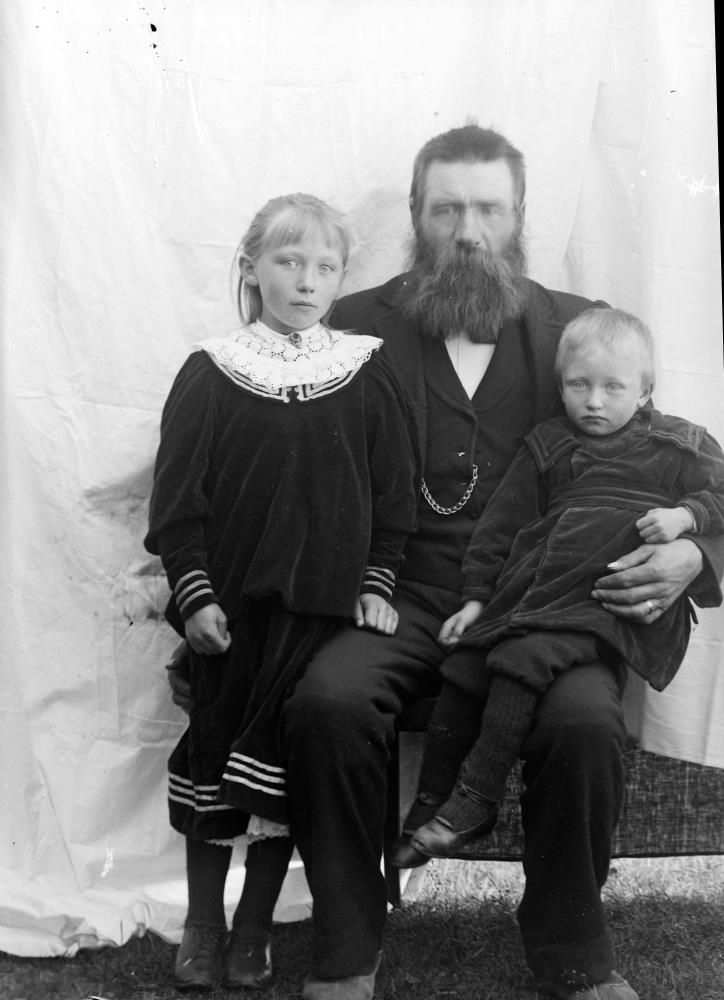 Kristján Sigurðsson f.30.12.1852 með börn sín, Aldís Anna Kristjánsdóttir f.7.12.1898 og Karl Kristjánsson f.10.11.1902, Grímsstöðum á Fjöllum.