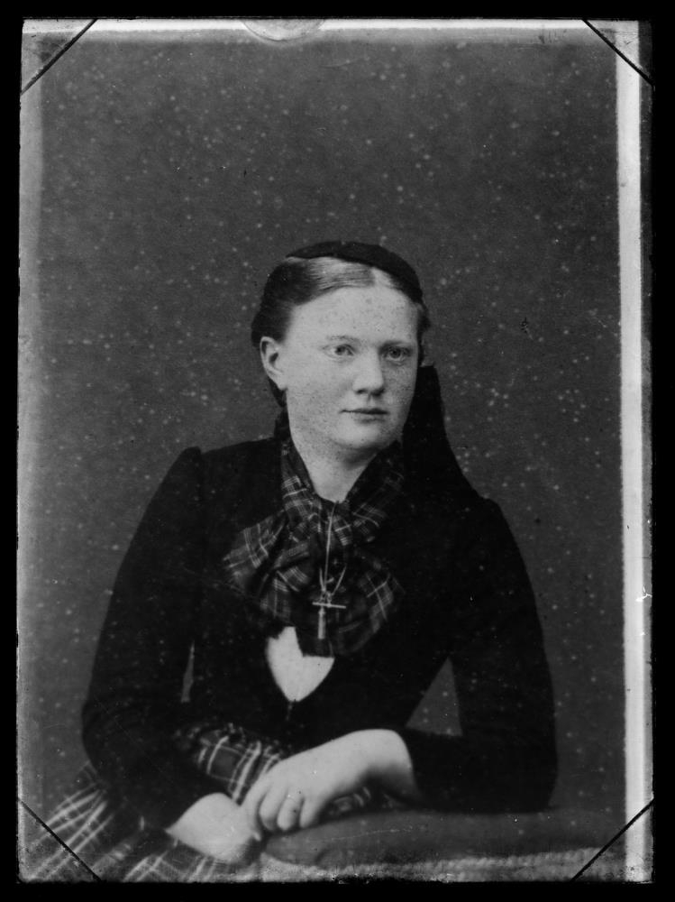 Eftirtaka. Kona. Brjóstmynd. Ragnheiður Bjarnadóttir frá Reykhólum, síðar á Bókhlöðustíg 2 í Reykjavík með eiginmanni sínum Þorleifi Jónssyni, póstmeistara í Reykjavík.