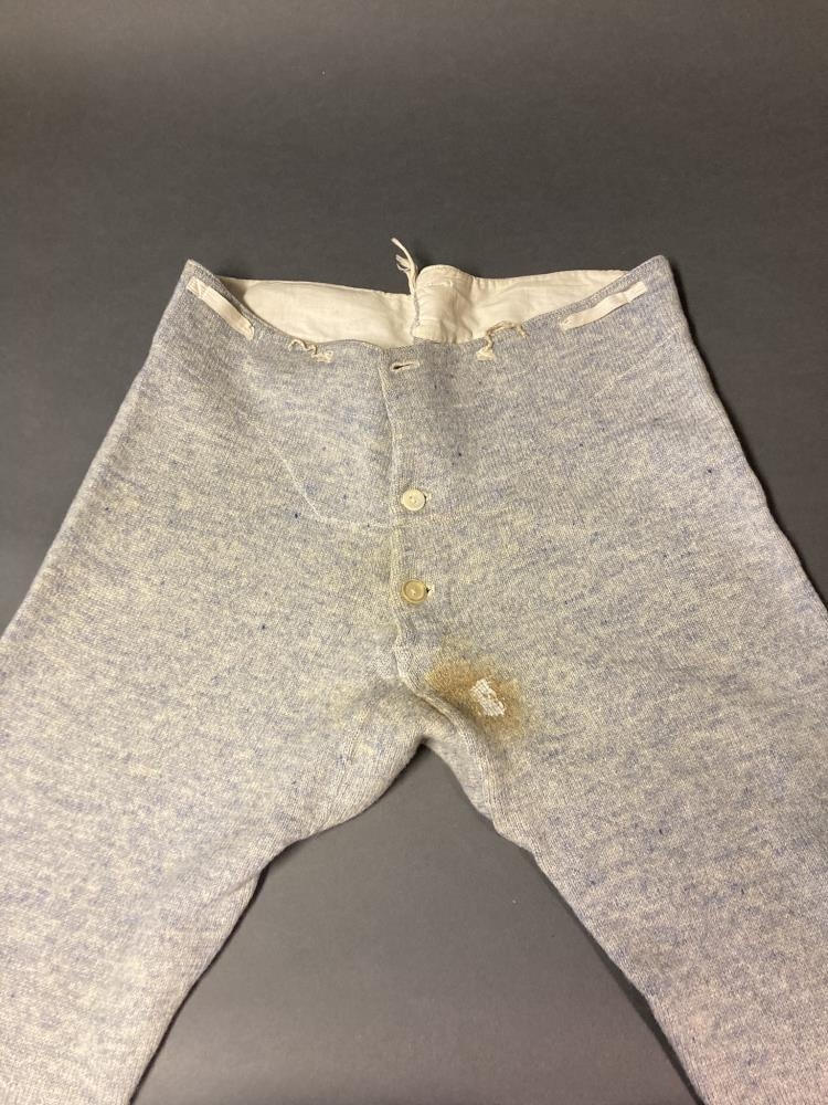 Karlmannsnærbrækur, prjónaðar og faldaðar vel um streng. Slær á bláum lit. Úr eigu Jóhönnu Albertsdóttur húsfreyju í Káragerði í Vestur- Landeyjum. Jóhanna var fædd 1880 og dó 1971. Maður hennar, Kristinn Þorsteinsson, var fæddur 1880 og dó 1972. Þau hjón áttu ekki börn.
