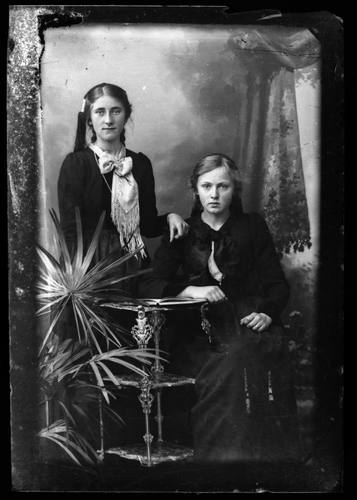 „Standandi er Margrét Jónsdóttir (1890-1965) og sitjandi er Ragnheiður Jónsdóttir (1889-1977). Þær voru saman í bekk í Kvennaskóla Reykjavíkur þar sem Ragnheiður varð síðar skólastjóri.“ (SBBP 2022)