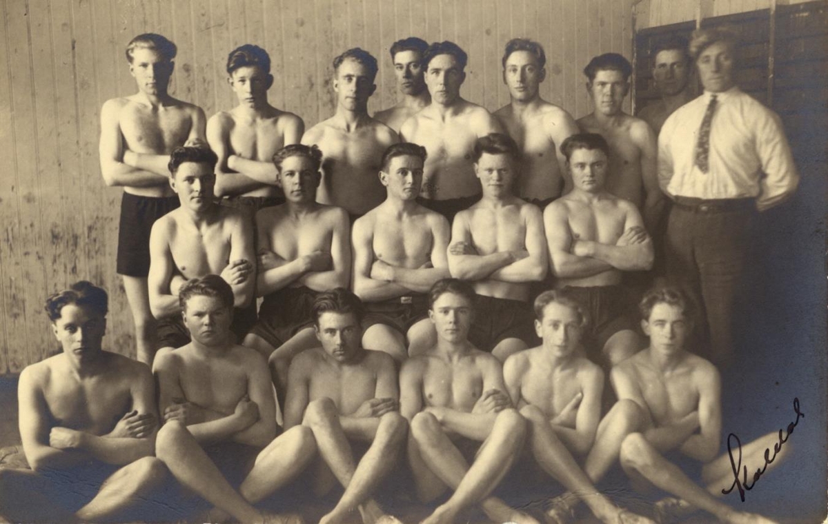 Efsta röð: Eggert Nenónýsson, Baldur Kolbeinsson, Sigurjón Einarsson, Magnús Sigurðsson, Jón Pétursson, Jón Magnússon, Guðmundur Ólafsson, Einar Halldórsson og Gísli Sigurðsson leikfimikennari.