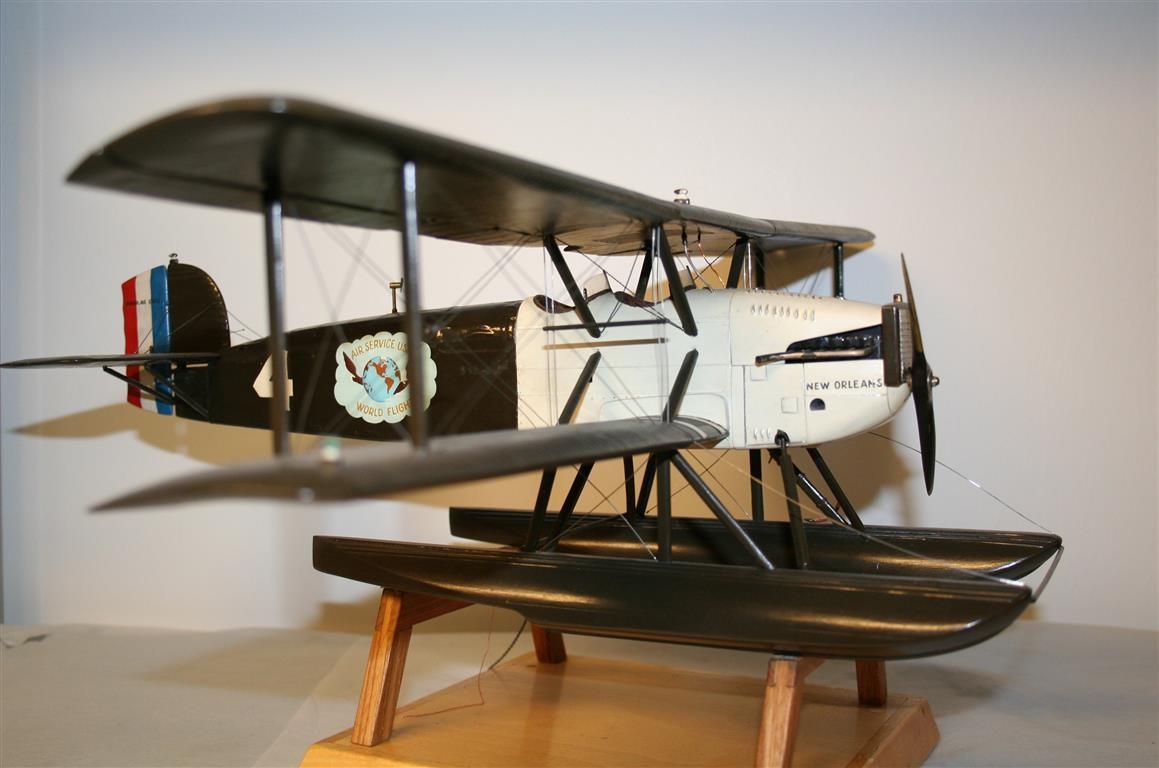 "Douglas World Cruiser D.W.C. - New Orleans nr. 4 - Bandaríska hnattflugið 1924. - Fyrsta flug til Íslands. Hornafirði 2. ágúst. - Reykjavík 5. ágúst. Eric Nelson flugstjóri, Jack Harding vélamaður. - Vænghaf 50 fet. Stærðarhlutfall 1:31. Reykjavík 1960 Þ.Þ. Þorleifur Þorleifsson ljósmyndari (1917-1974) smíðaði líkanið."