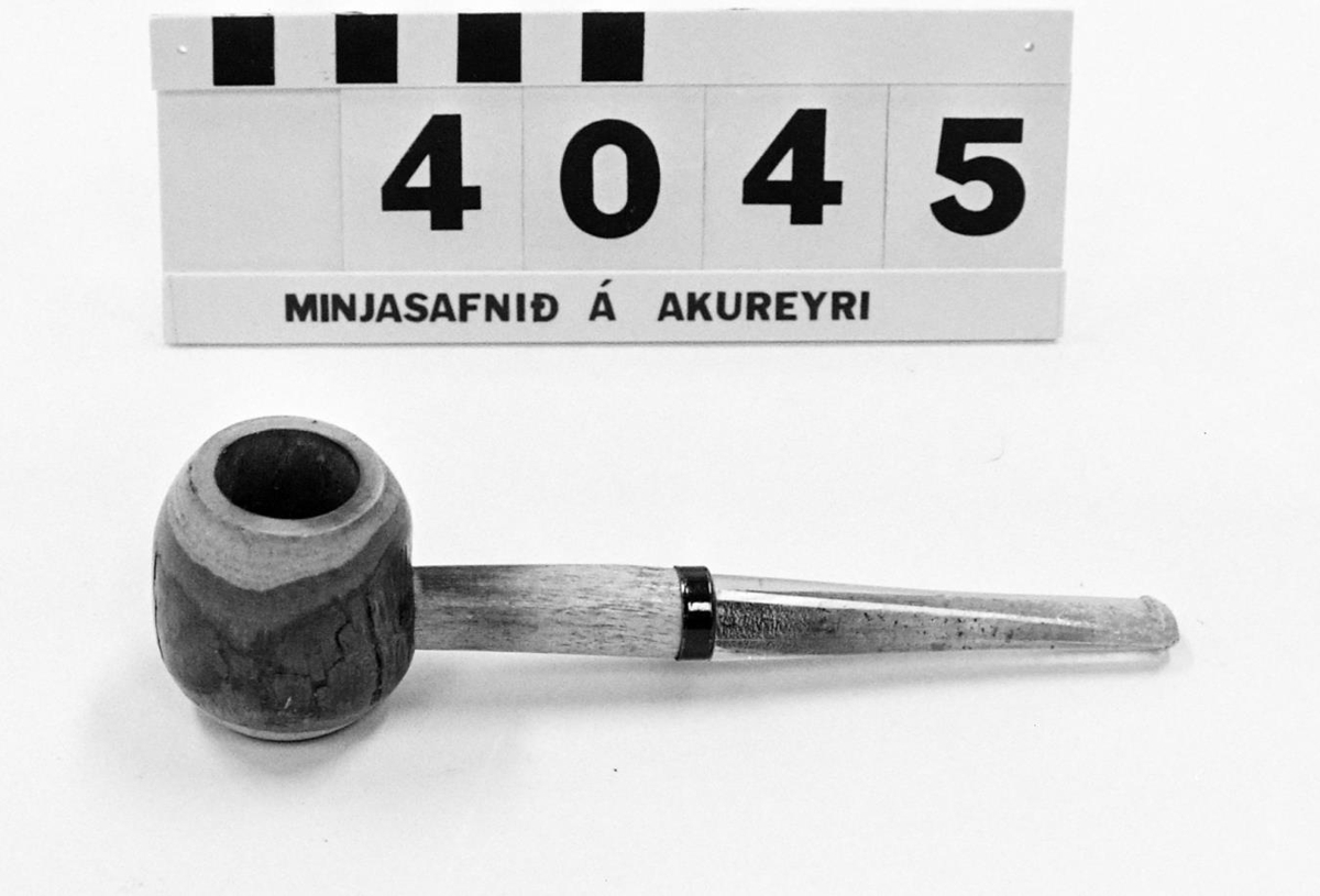 pípuhaus úr ljósum og brúnum viði og samlitur leggur að munnstykki,