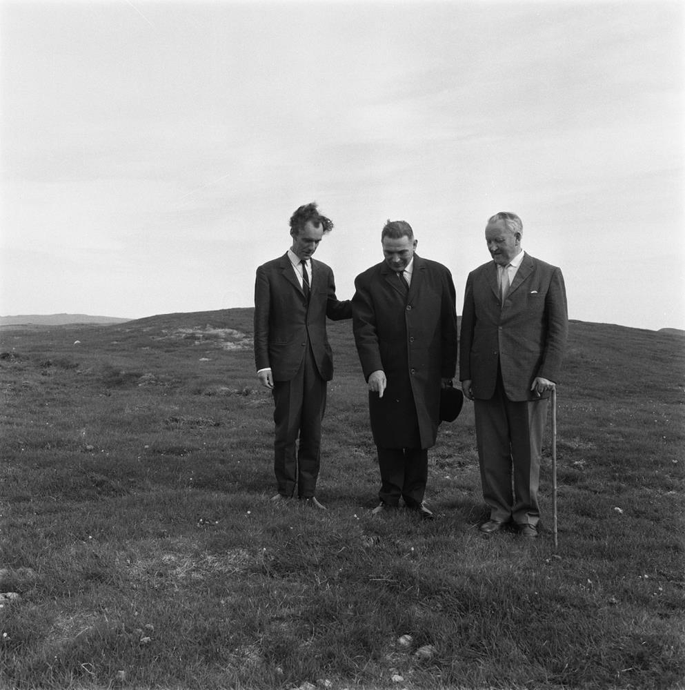 Árnessýsla. Bláskógabyggð. Skálholt. Séra Sigurbjörn Einarsson ásamt tveimur karlmönnum.