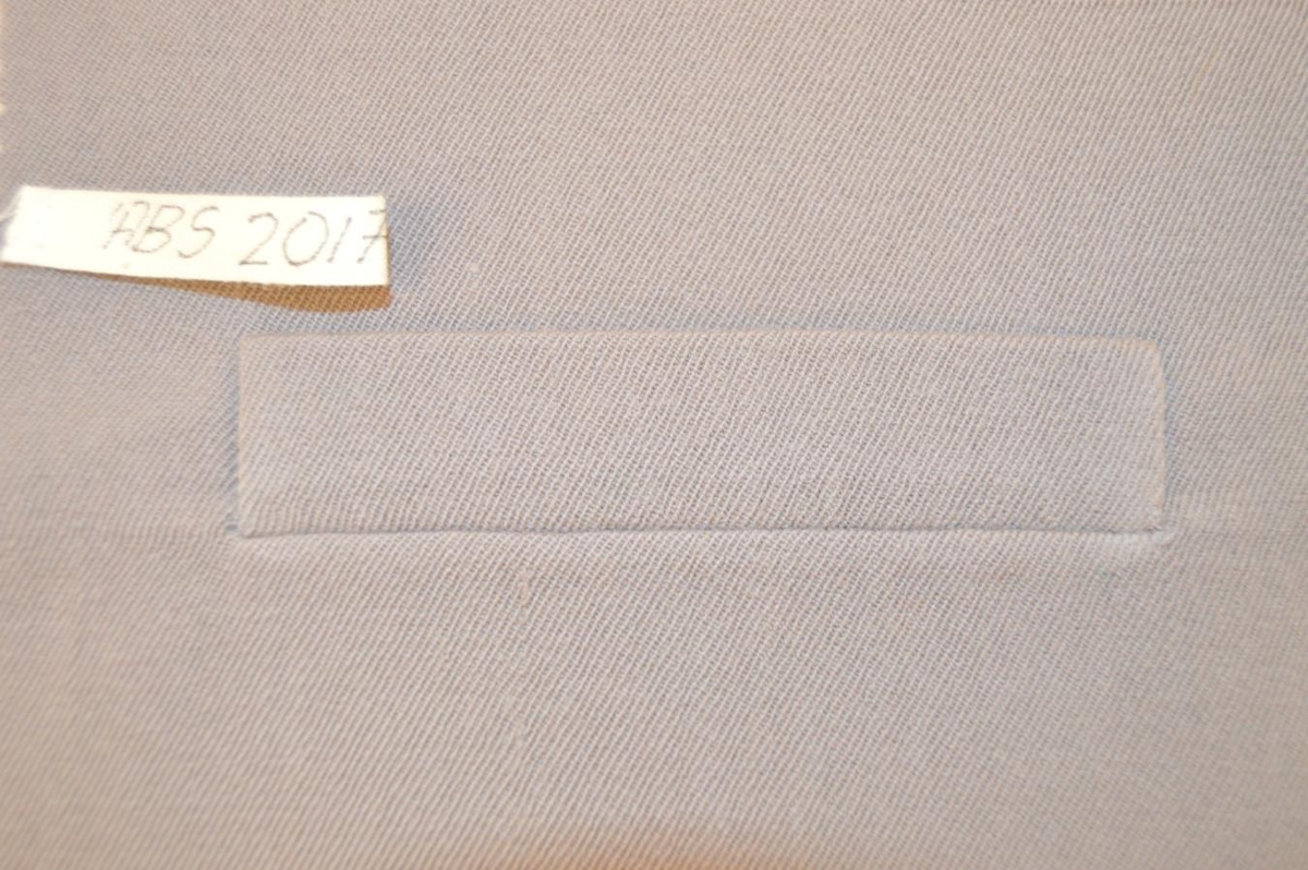 Efnið er ullargaberdín (stríðs-gaberdín). Unnið í Handavinnudeild Handíða- og myndlistaskólans 1949-1951.
