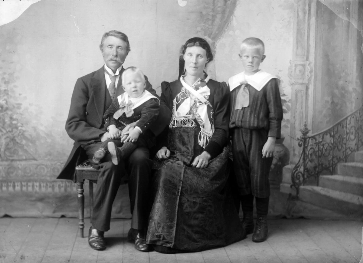 Illugi Arinbjörn Einarsson f.7.8.1873 með konu sinni Kristjönu Friðriku Hallgrímsdóttiur f.2.5.1876, syni sínum Óskari Illugasyni f.8.8.1913 og uppeldissyni sínum Ólafi Hallgrími Sigurðssyni f.5.1.1908.