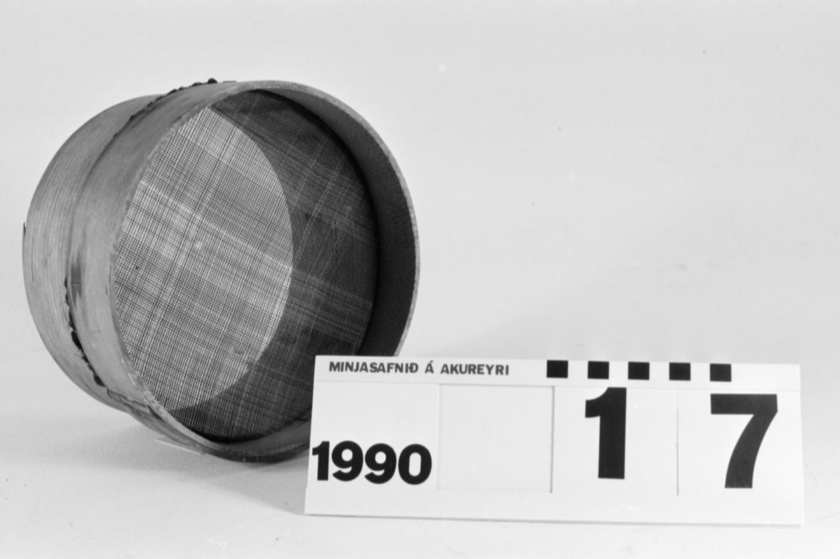 með strigasigti. Spónninn í umgjörðinni um sigtið er úr einhverjum