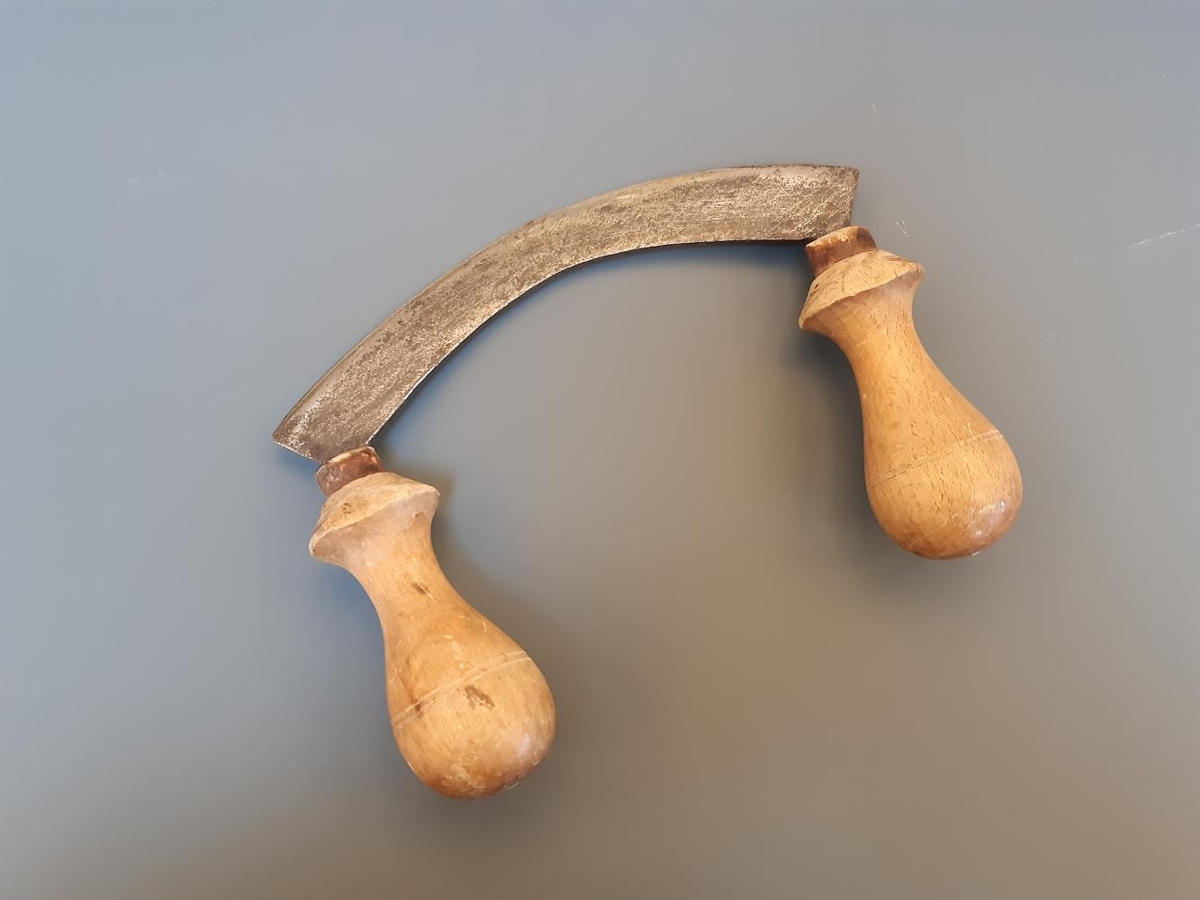 Tóbaksjárn, smíðað af Guðna Hjálmarssyni (1892-1969) bónda frá Lambhúshóli. Járnið er með einu blaði og tveimur tréhandföngum með einföldu renndu mynstri. Þau eru bæði eydd á fjórum stöðum vegna talsverðrar notkunnar, þar sem haldið hefur verið í þau. Járnið er vel farið og ennþá beitt.