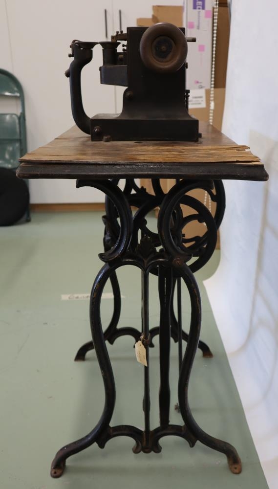 Go Back To SearchSave to My CollectionPrintCopy linkOrder a photoTerms of UseHanskagerð1900 - 1920In preservation atReykjavík City Museum Hanskasaumavél á borði. Main informationBergmann & Hüttemeier, Attributed Sigrún Kjartansdóttir, Used by Donor: Ragnheiður JónsdóttirDating1900 - 1920MaterialÓlífræn efni, Málmur, JárnObject-related numbersMuseumnumber a: ÁBS-727Dimensions77 x 40 x 95 cm Lengd: 77 Breidd: 40 Hæð: 95 cmPlaceNúverandi sveitarfélag: ReykjavíkurborgRecord typeArtifactKeywordsKeyword: Hanskagerð Keyword: Saumavél