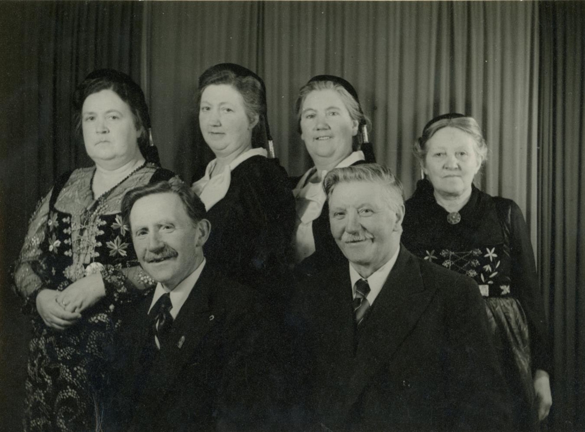 Mynd af tveimur körlum og fjórum konum sem eru systkini frá Skriðinsenni/Skriðnesenni og öll Lýðsbörn. Í aftari röð eru fjórar fullorðnar konur. Frá vinstri: Valgerður, klædd upphlut; Ragnheiður, klædd peysufötum; Anna, klædd peysufötum og svo Guðrún, klædd upphlut. Í fremri röð eru tveir fullorðnir karlmenn í jakkafötum og með bindi. Frá vinstri: Jón, með dökkt hár og yfirvaraskegg og svo Brynjólfur, með hvítt eða grátt hár og yfirvaraskegg.