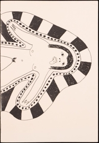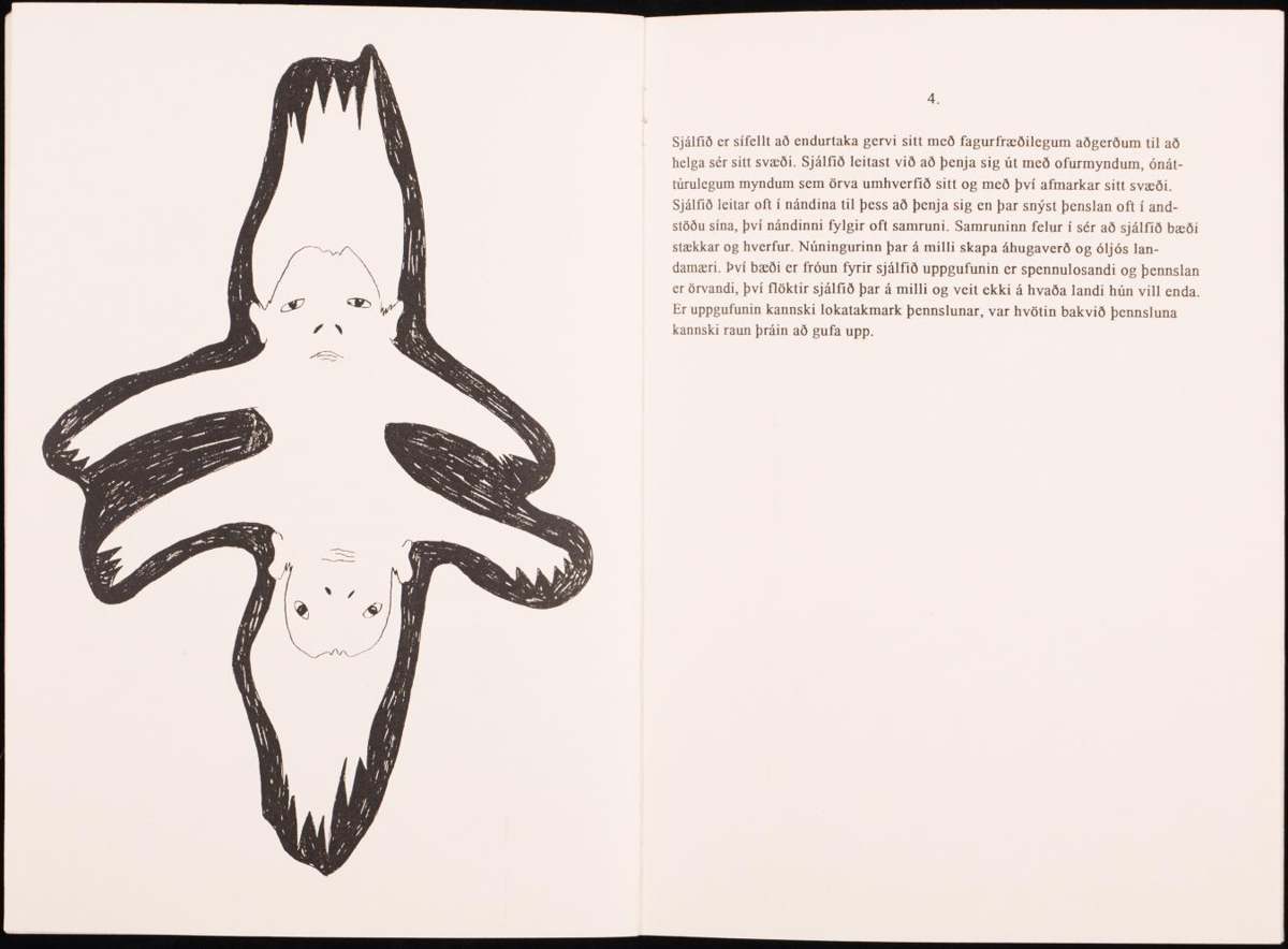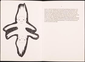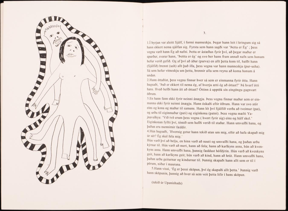 Svart prent á rjómagulan pappír. Heftað. Tekningar og texti á ensku.