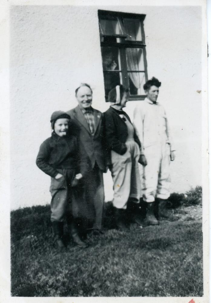 Frá vinstri er Sigmundur Sigurðsson, Guðbrandur Benediktsson Broddanesi, Signý Sigmundsdóttir og svo Alfreð Halldórsson Kollafjarðarnesi. Myndin er tekin á réttardag hjá Fellsrétt í Kollafirði.