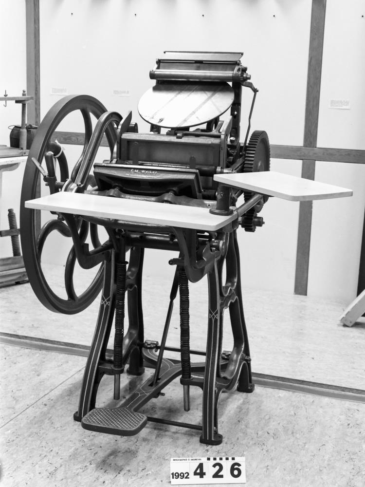 ný borð. Aðallitur er brúnn en rautt og gyllt skraut. Á vélinni stendur: