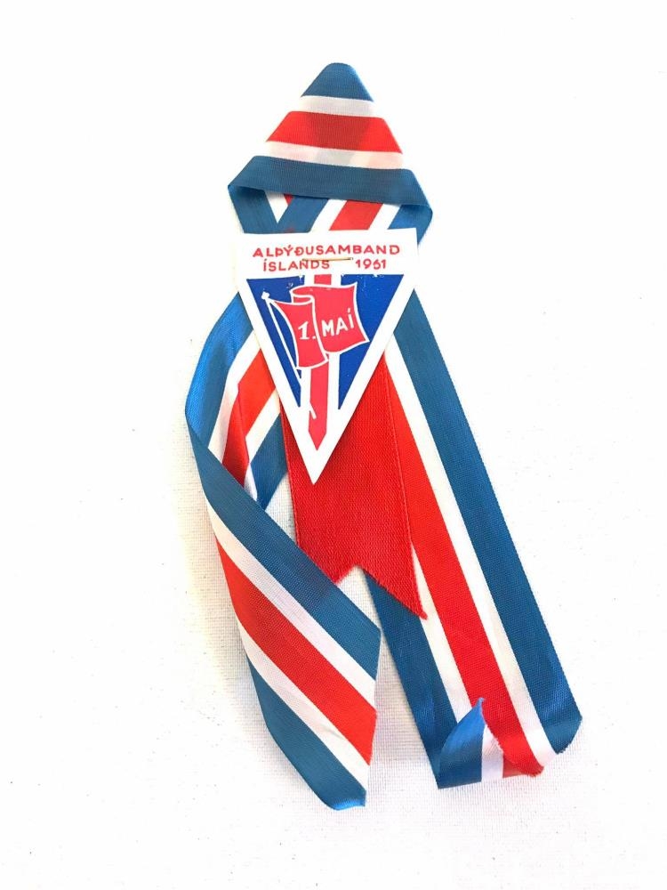 1. maí Alþýðusamband Íslands 1961. Íslenski fáninn á merki og borðar.