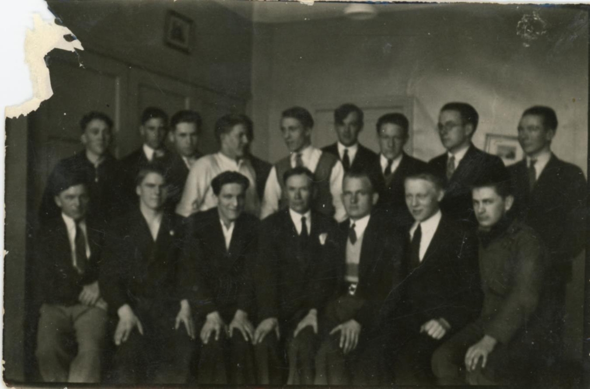 Hópur karla. Í aftari röð eru tíu, en fremri eru sjö. Þeir eru flestir klæddir í dökk jakkaföt með bindi.