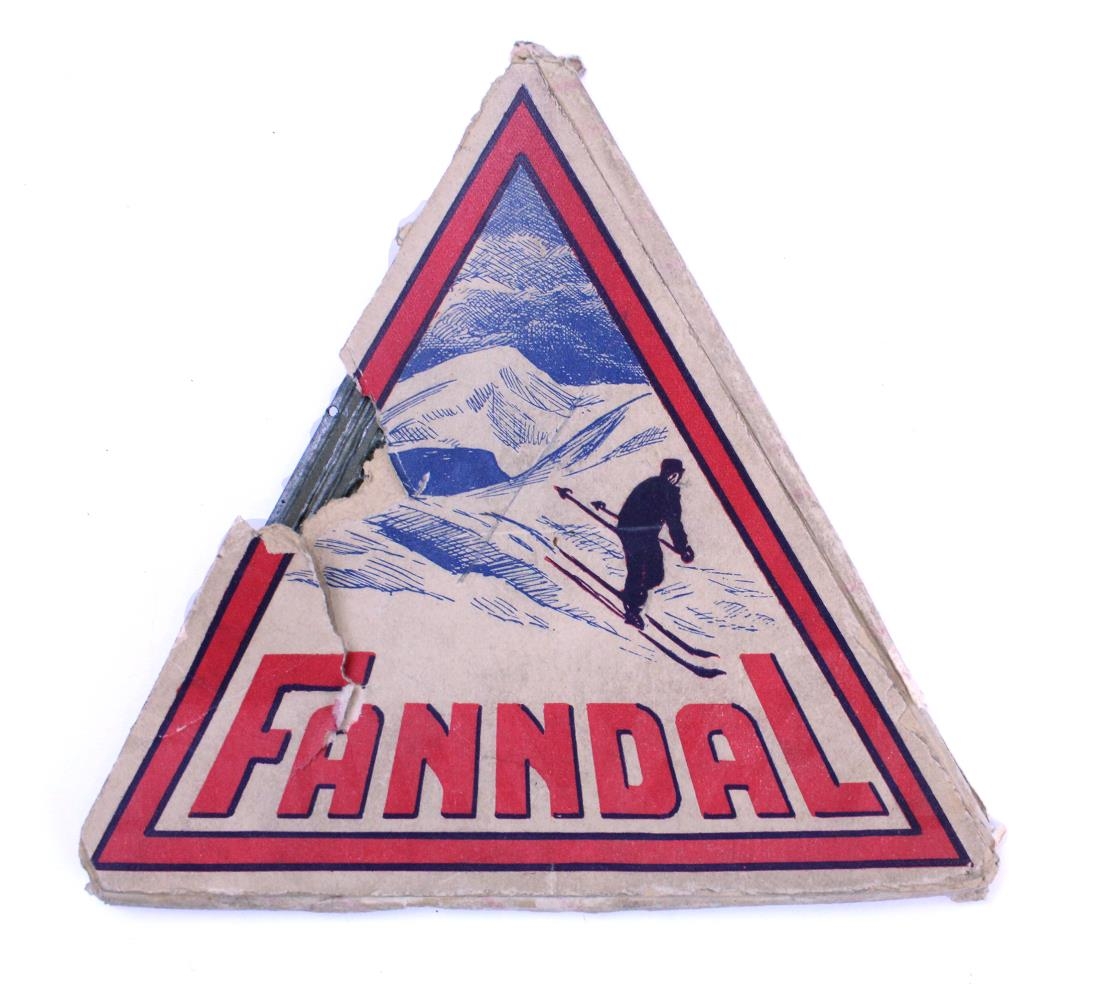 Stensill úr málmi, tvö stykki. Stensillinn er þríhyrndur og sýnir skíðamann í Skarðsdal og fjalllendi Siglfirðinga í baksýn. Neðst stendur Fanndal – en það vísar í verslun Gests Fanndal sem rekin var á Siglufirði á árunum 1934-1991. Pappír er límdur framan á stensilinn og virðist hann ónotaður. Stensillinn er í pappaumbúðum sem sýnir logoið í lit.