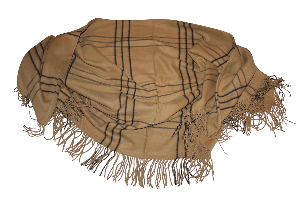 Brún köflótt peysufatasjal.