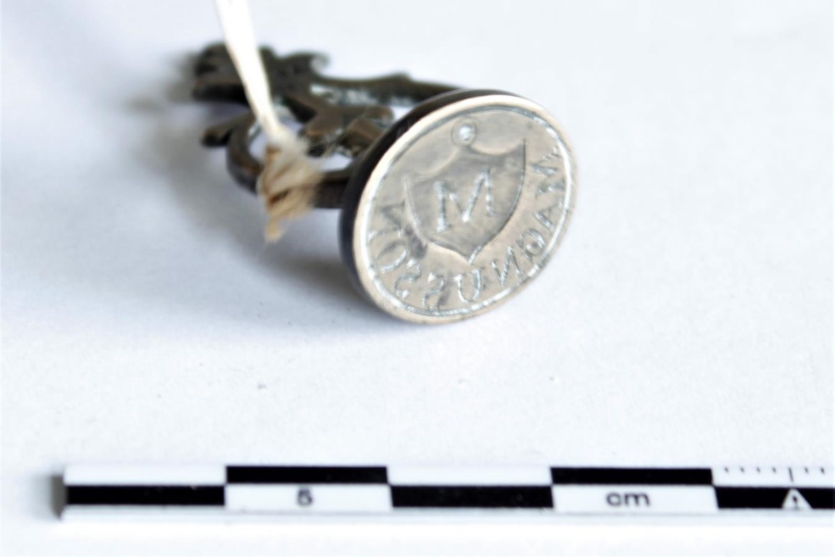 Innsigli Magnúsar Magnússonar , eldra í Strandarhöfða, afa Jónasar, sem þar býr nú (1961), smíðað úr kopar, hæð 3,5 cm., þverm.stéttar 1,8 cm. Ástéttina er grafið: M.MAGNÚSSON.