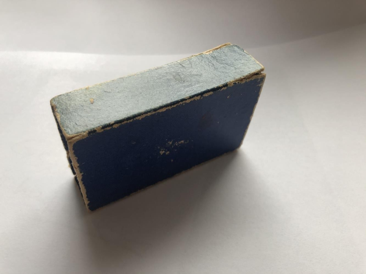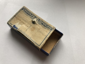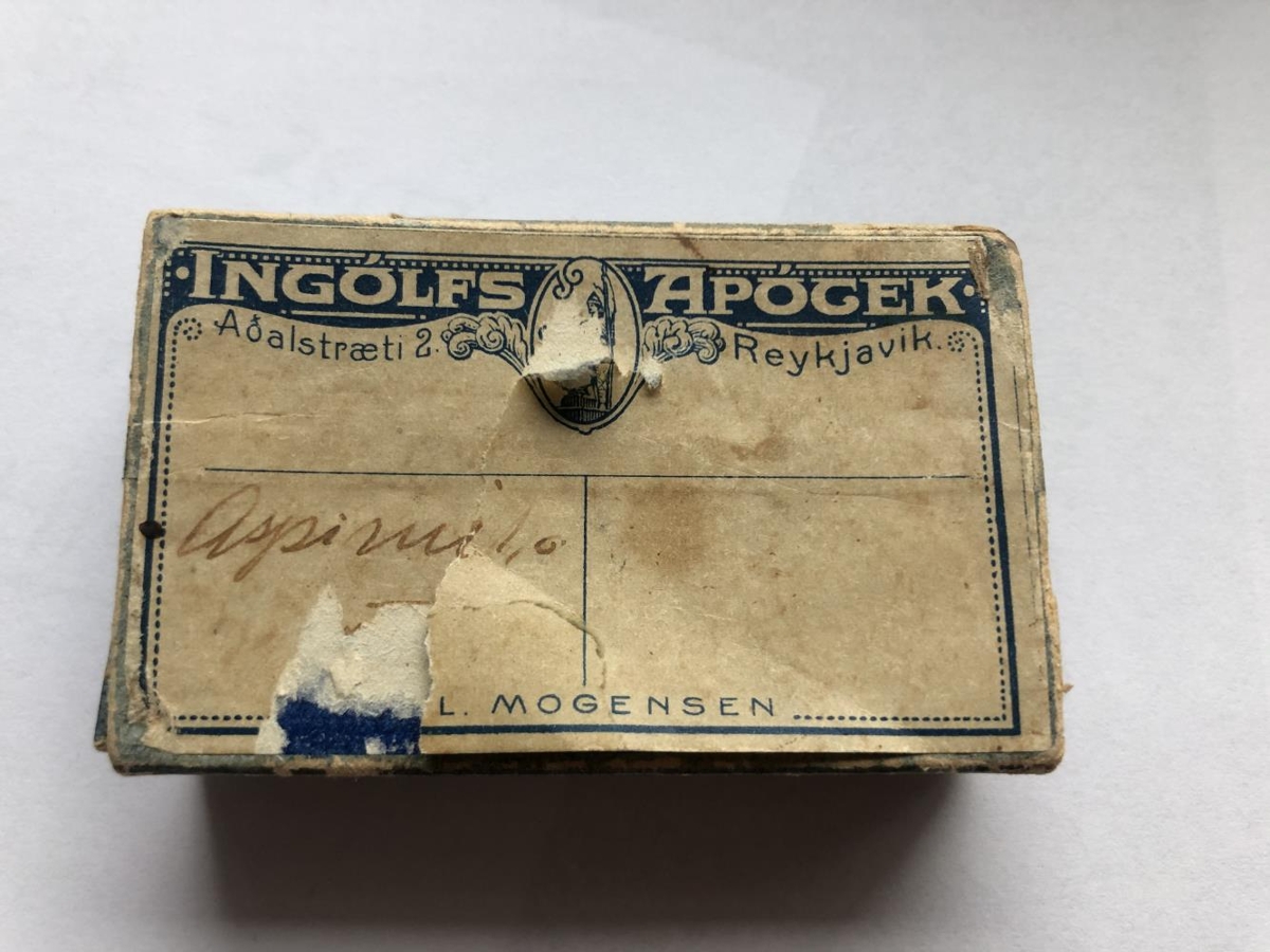 Pappírsumbúðir, nokkurs konar stokkur. Blár og merktur Ingólfs Apóteki, Aðalstræti 2 í Reykjavík. Hefur gegnt hlutverki lyfjaumbúða.