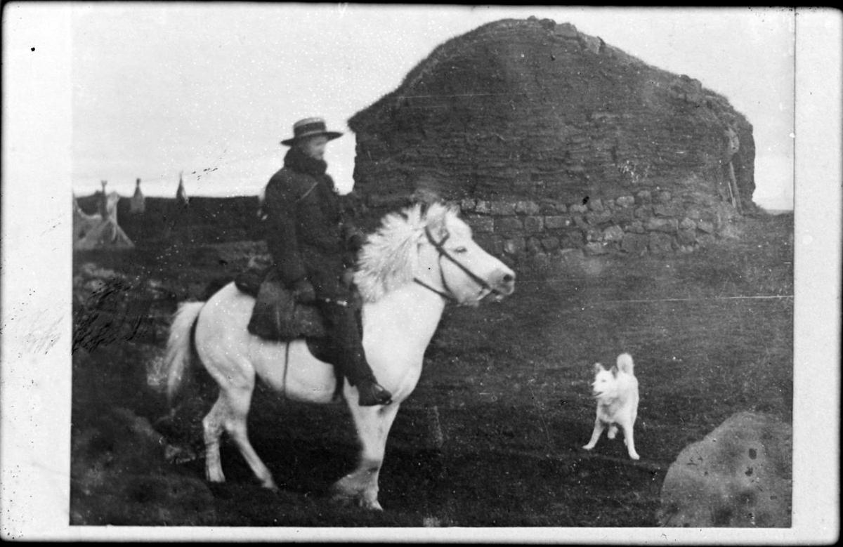 Stefán Helgason f.31.5.1884 í Haganesi ríðandi í Mývatnssveit. (Eftirtaka)