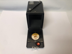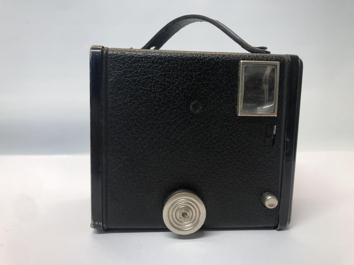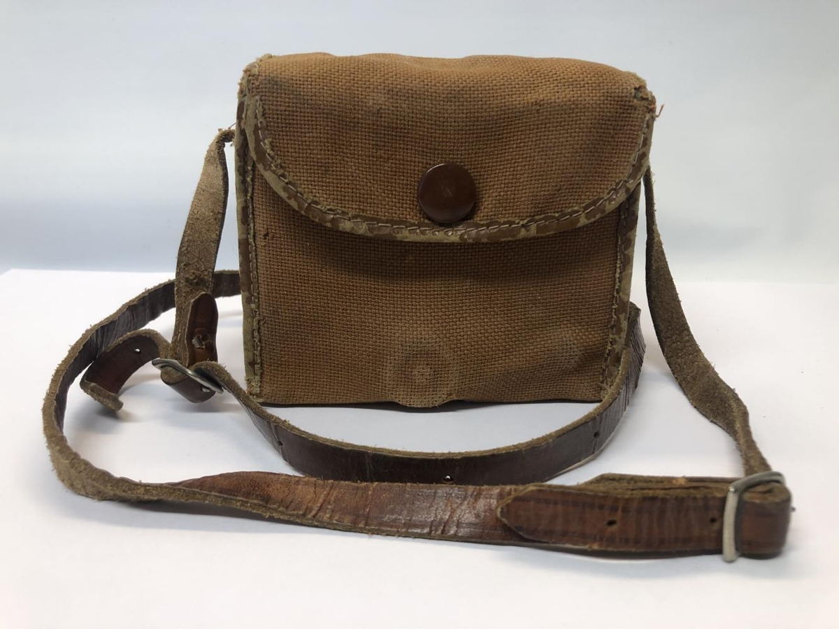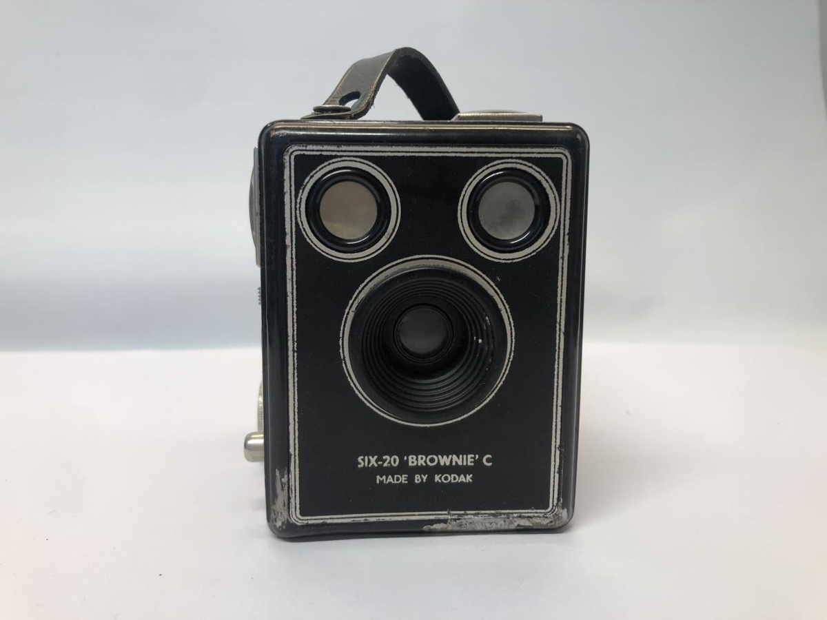 Kassamyndavél - Kodak Brownie C Six-20. Í brúnni strigatösku með leðuról. Úr eigu föður gefanda.