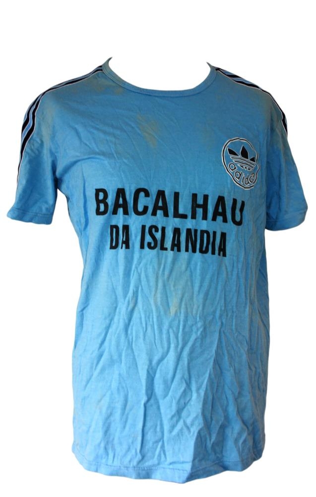 Blár bómullarbolur. Merking á bringu "BACALHAU DA ISLANDÍA" og með lógó adidas á vinstra brjósti.