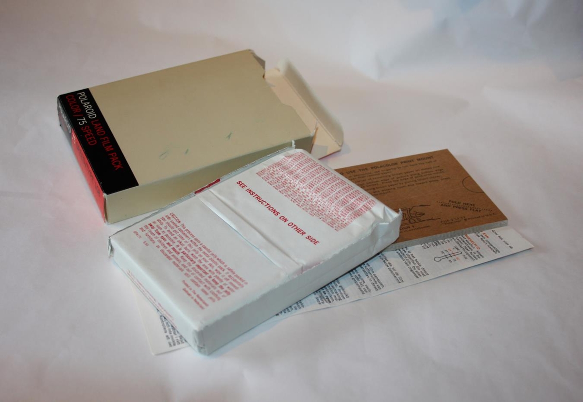 Polaroid filma í lit af gerðinni 75 speed / type 108þ Filman er í upprunalegum kassa og eru 8 myndir á filmu. Á hlið stendur að notist fyrir janúar 1970. Framleiðsla á þessari gerð af filmum hófst árið 1963 og var framleitt til 2002 af ýmsum gerðum.