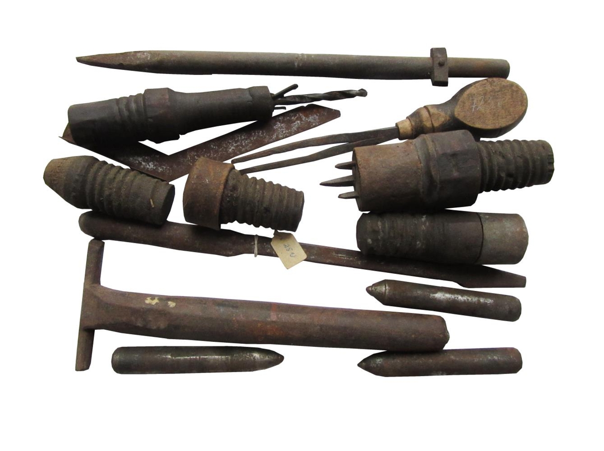 Stokkur með hlutum tilheyrandi rennibekk Guðmundar Guðmundssonar í Grafarkoti í Vestur-Húnavatnssýslu.