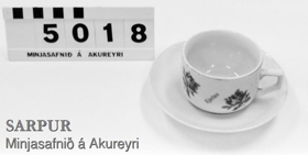Bollapar úr hvítu postulíni, Yfirbollinn mjög lítill, hefur verið með gylltri rönd á barmi sem nú er mjög máð. Á yfirbollanum eru tvær rauðar rósir með grænum laufblöðum. Á milli rósanna er skráð nafnið Kjartan með gylltum bókstöfum. Undirskálin er alldjúp, gyllt rönd á barmi. Eigandi bollaparsins var Kjartan Júlíusson, Skáldstöðum efri, Saurbæjarhreppi, Eyjafirði. Þvermál á undirbolla 12,7 sm.