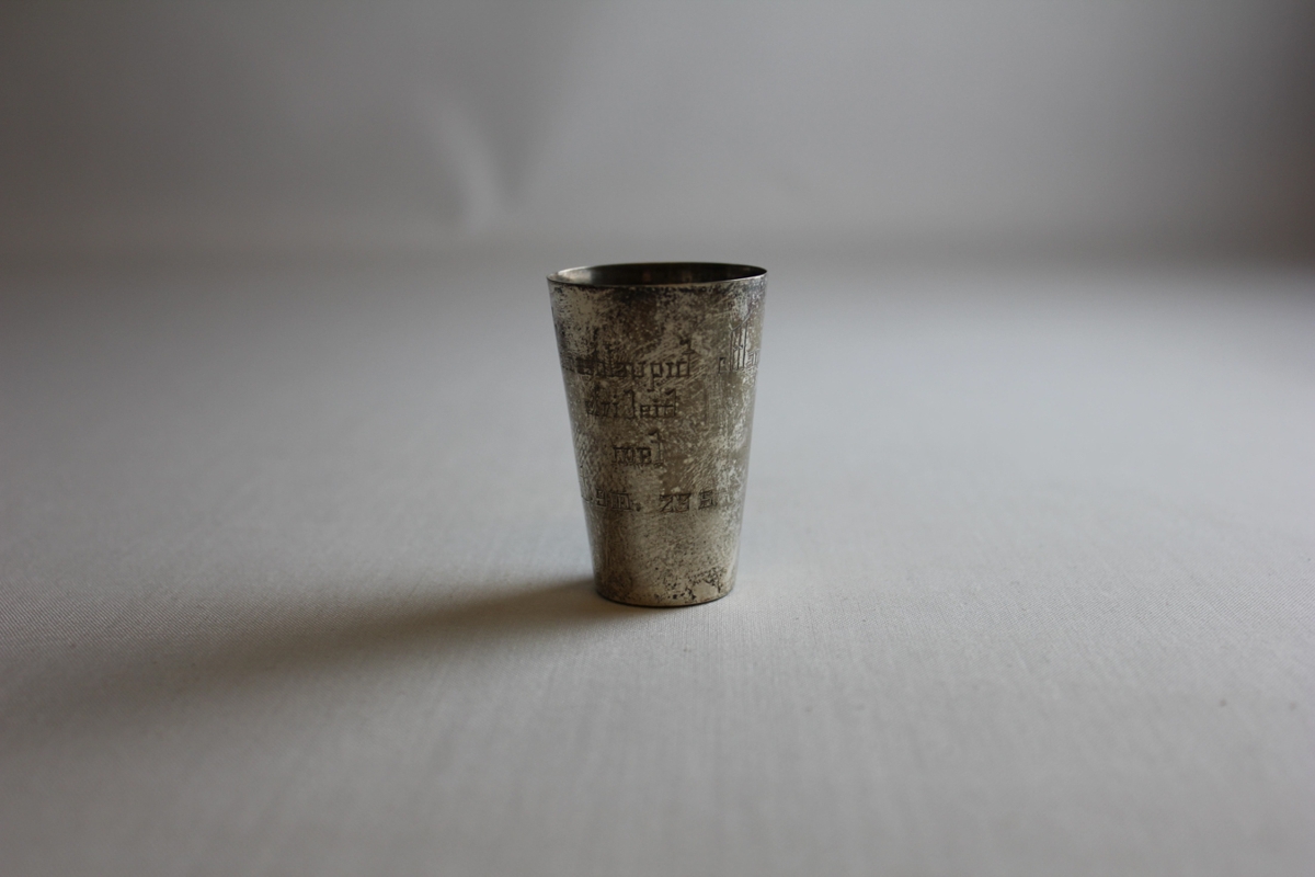 Lítill silfurbikar, verðlaun. Áletrun: Álafosshlaupið, efri leið, met 1 t. 9 m. 23 s. Magnús Guðbjörnsson 1931. Hæð 5 scm á hæð, þvermál 3,5.