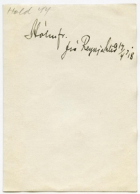 Á bakhlið er skrifað: Hólmfr. frá Reykjahíð. 14/4 1918.