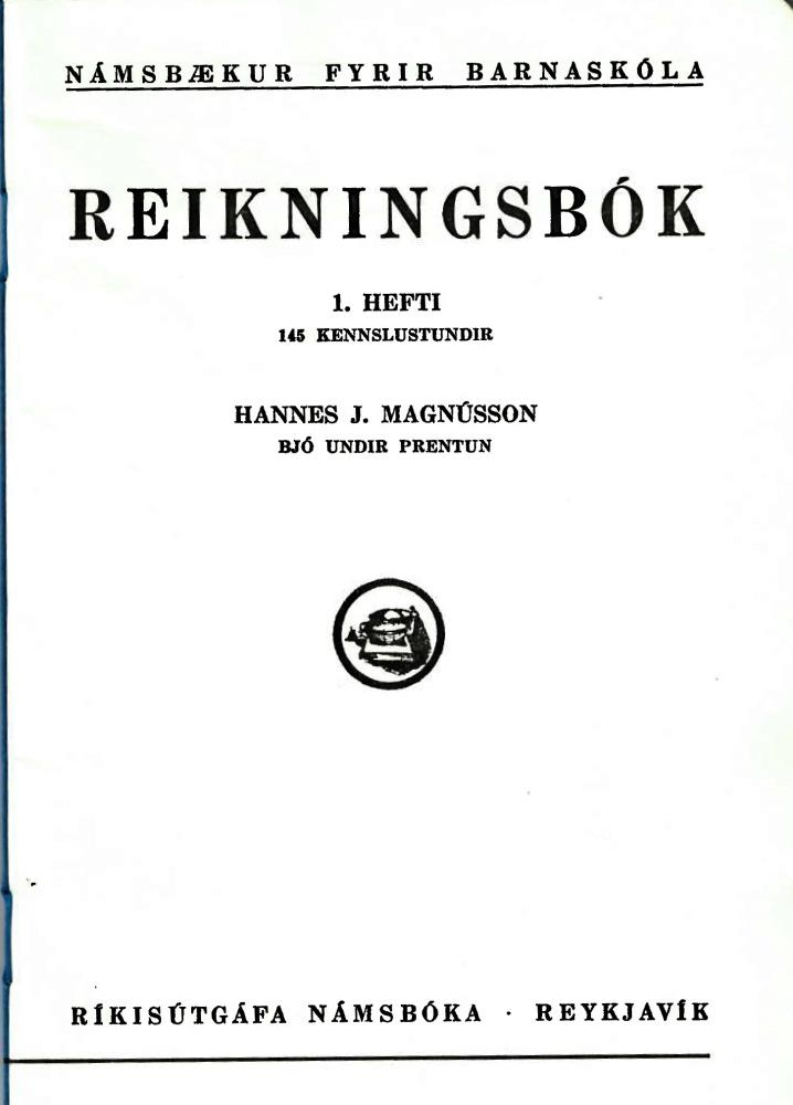 Reikningsbók 1. hefti / Hannes J. Magnússon bjó undir prentun